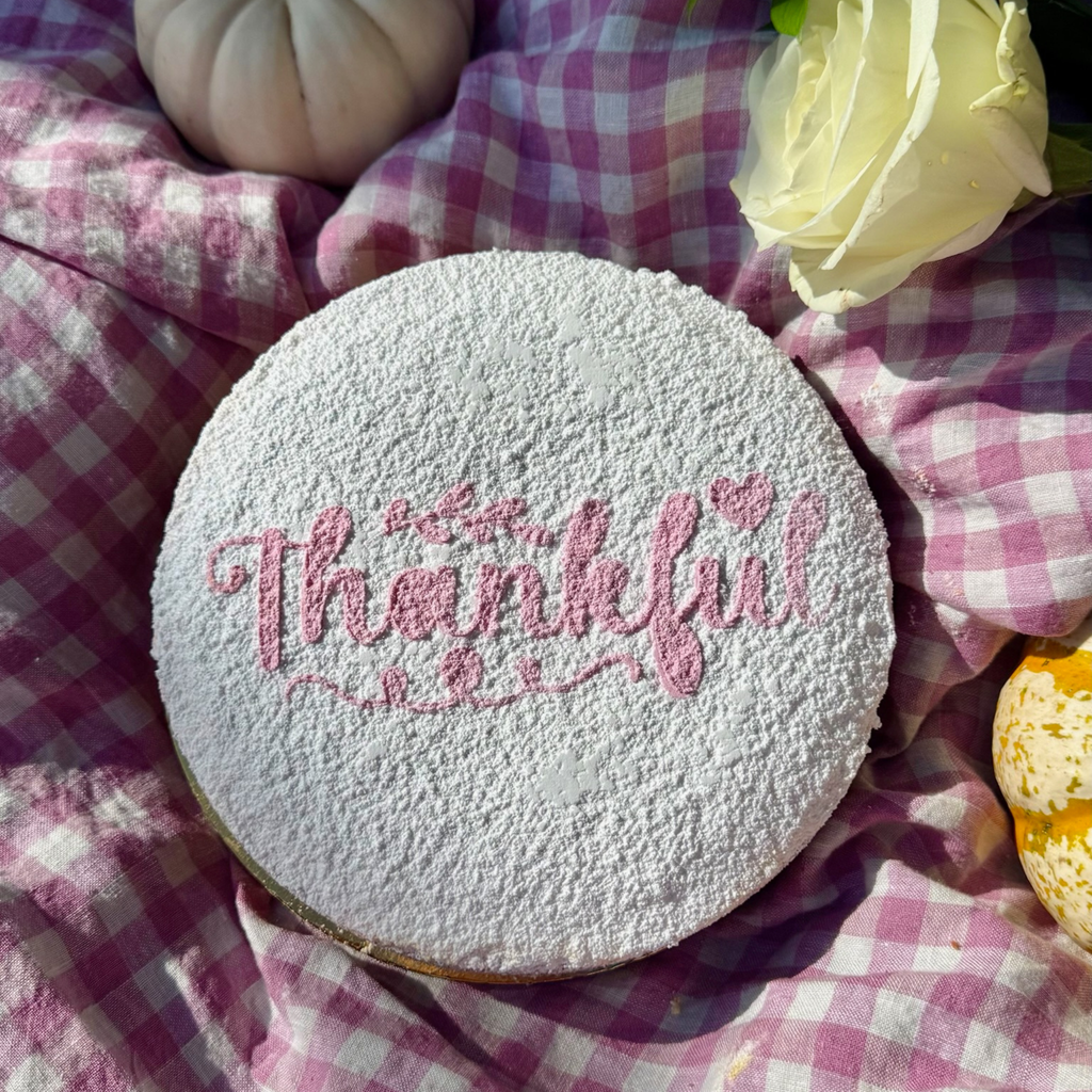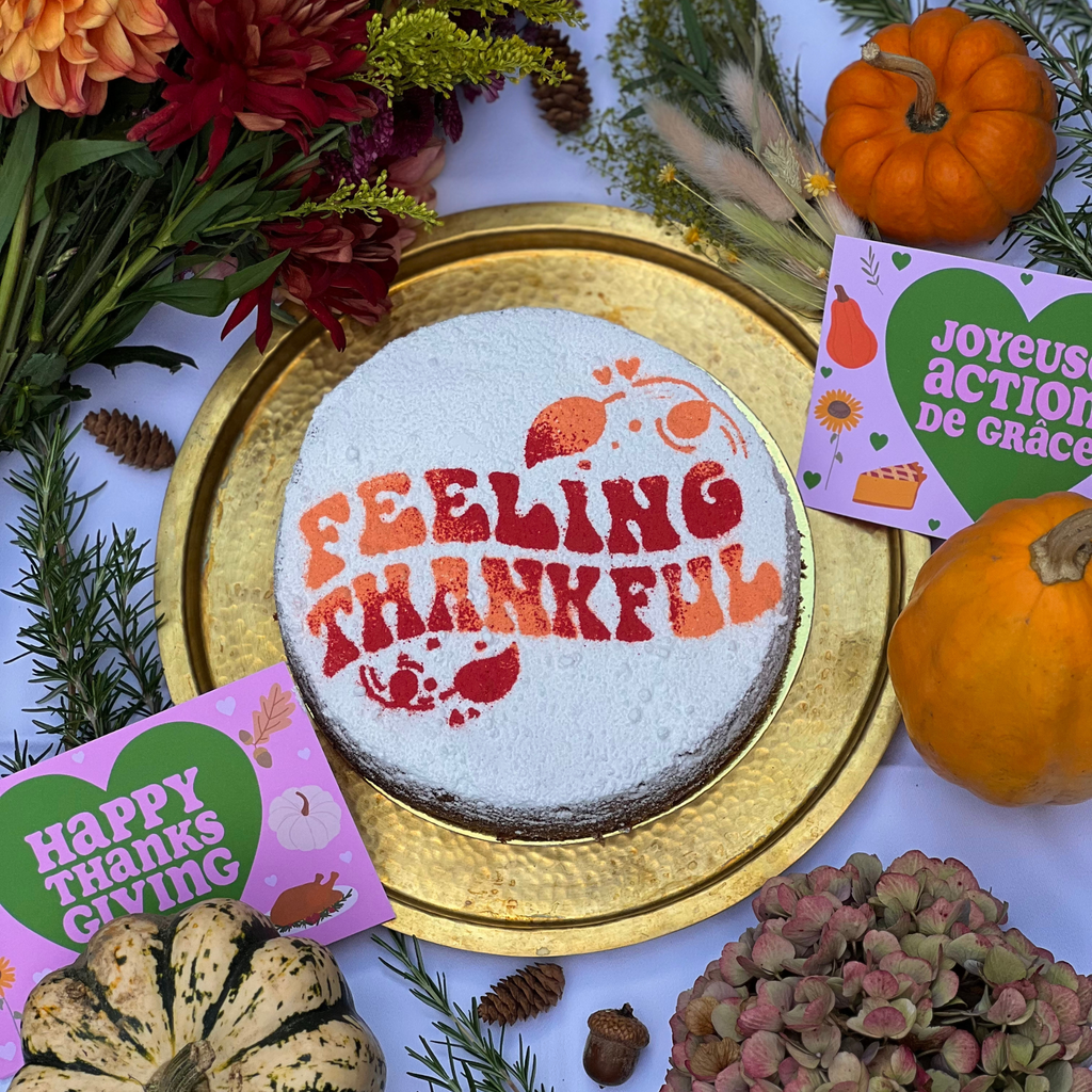 Celebrate the season of gratitude with our limited-edition Thanksgiving Collection, featuring fun and festive designs that make every table a little sweeter. Each cake is baked with our signature olive oil base — moist, rich, and perfectly balanced.